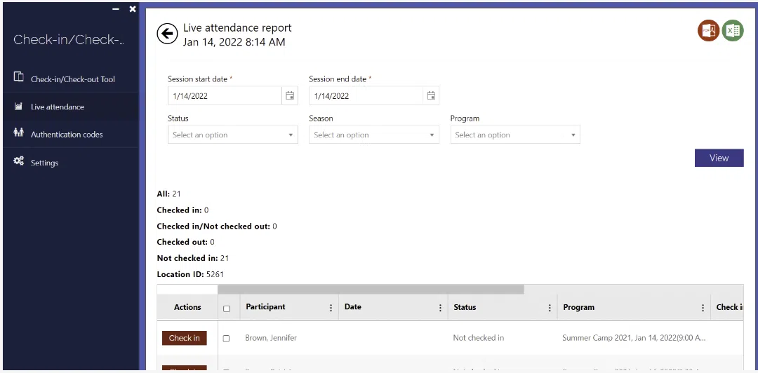 Jumbula also offers waitlist and real-time capacity management tools, automated confirmation emails, and a check-in-check-out live attendance tracking feature: