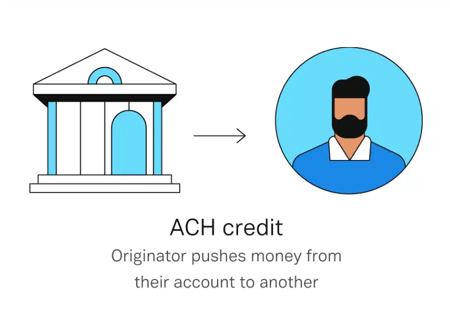 ACH credit is sometimes referred to as a push transaction. That’s because the payer has the ability to push funds into the payee’s account at the payee’s discretion.