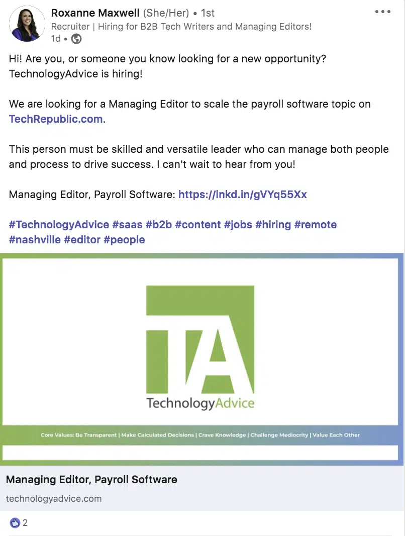 For example, here’s a recruiter doing exactly that on LinkedIn: