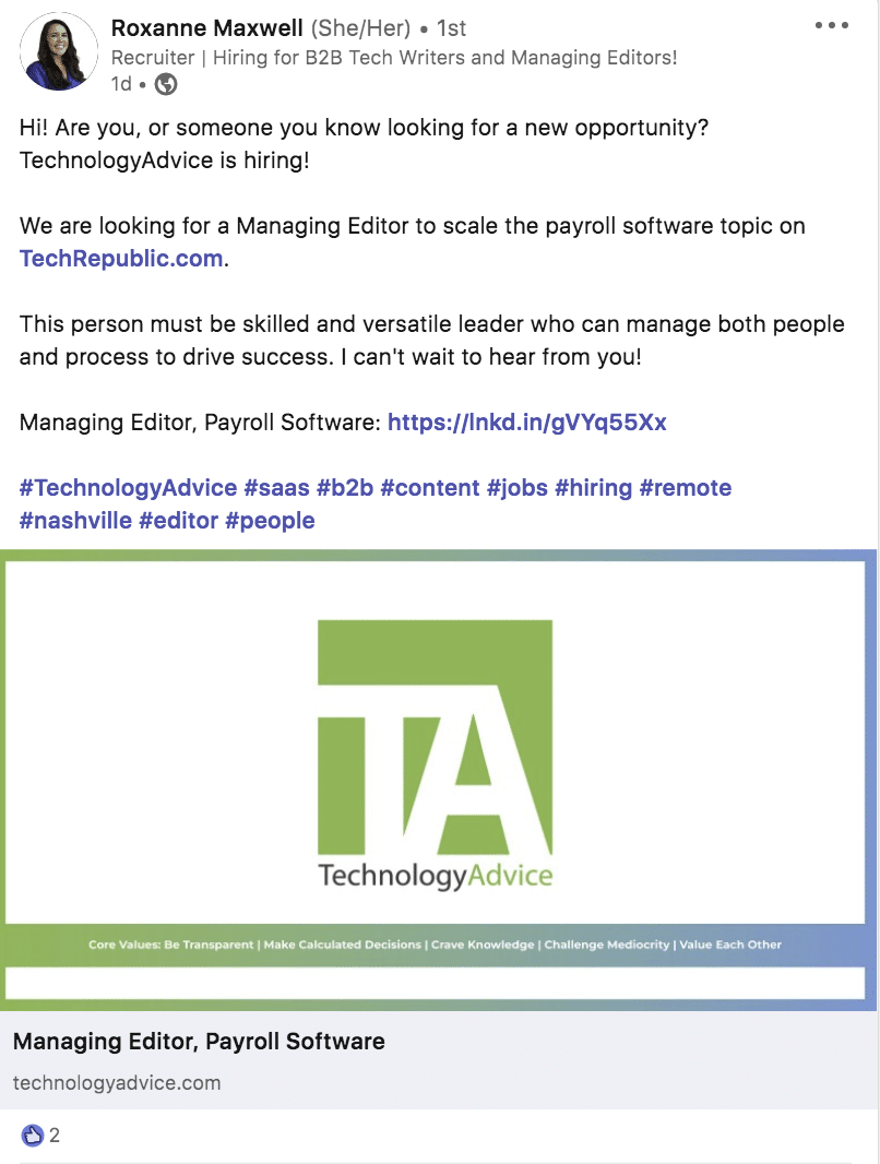 For example, here’s a recruiter doing exactly that on LinkedIn: