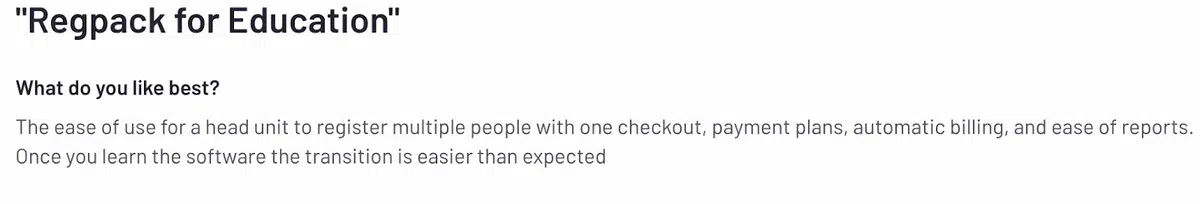 For example, users love how Regpack also provides features that help them manage their student registration process, like the easy-to-use online registration form builder: