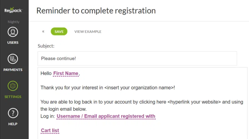Typically, your automated billing software will also allow you to set up automated invoices (e.g., invoices sent monthly for recurring orders), payment confirmation emails, upcoming and past-due payment alerts, or reminders to complete their registration.