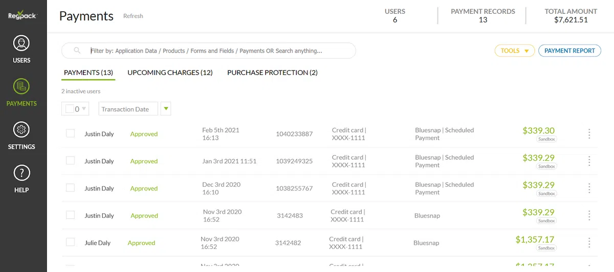 For example, in a payment report, you should be able to view the payments by group, by date range, by product, or even by a specific customer.