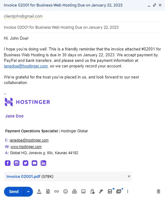In sum, instead of setting a calendar reminder to remind yourself to send a reminder email, find a billing software that will send these emails for you, so that you can get on with the more important aspects of your job while feeling confident that your customers will pay on time.