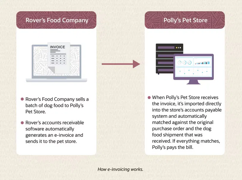 In this example, Rover’s Food Company is the supplier and Polly’s Pet Store is the client or buyer. Rover’s sends an invoice to Polly’s for a batch of dog food. Then, Polly’s pays the bill.