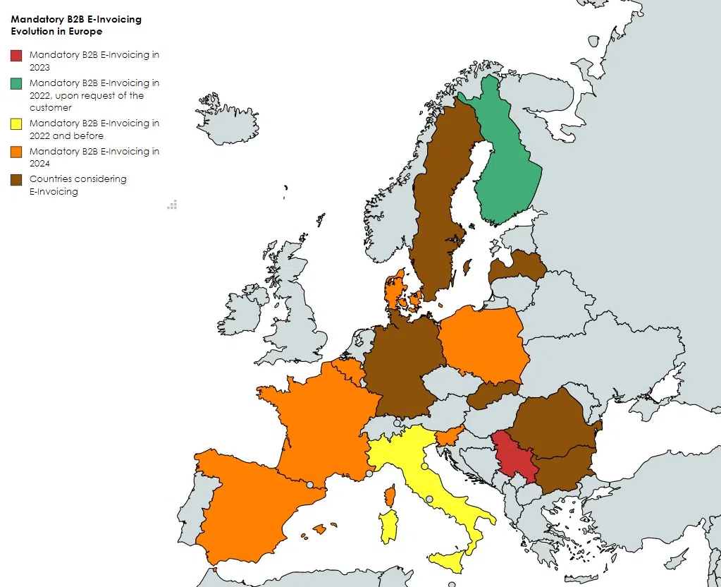 For a more comprehensive list, take a look at this map of the history of mandatory B2B e-invoicing in Europe: