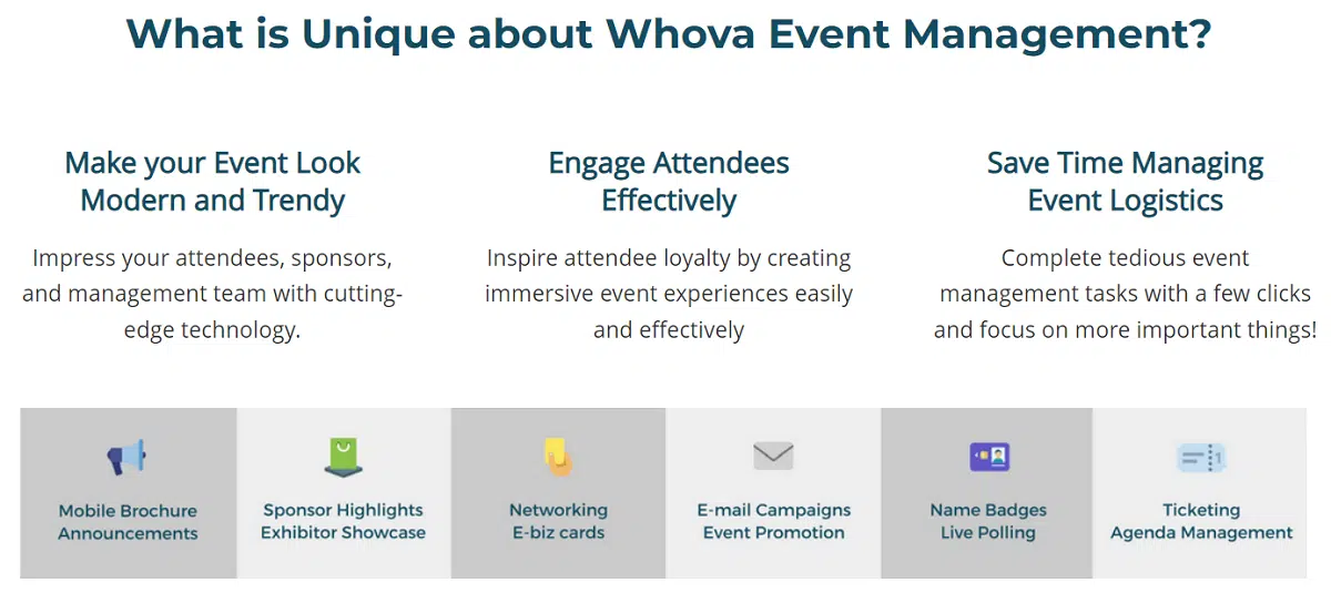 The biggest advantage of Whova is the app users can download and use to check the agenda or network, while organizers can conduct promotional activities through it.