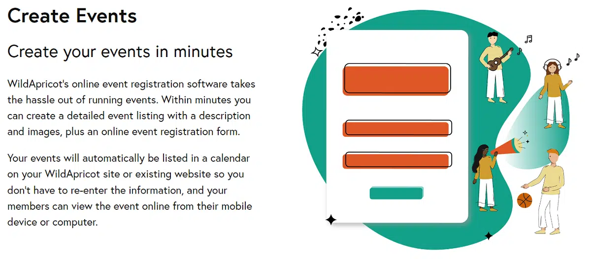 It allows event organizers to create events quickly and the event conveniently appears on calendars on WildApricot’s and the user’s website, so attendees can register from either.
