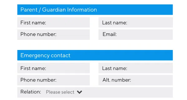 Whenever possible, opt for dropdown menus or tickable boxes instead of asking parents to type out everything—this will save them some time and make the registration process more efficient.