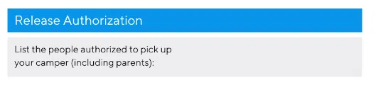 This is also the ideal opportunity to determine who can pick up the camper from your camp, which often aligns with the emergency contact and parents.