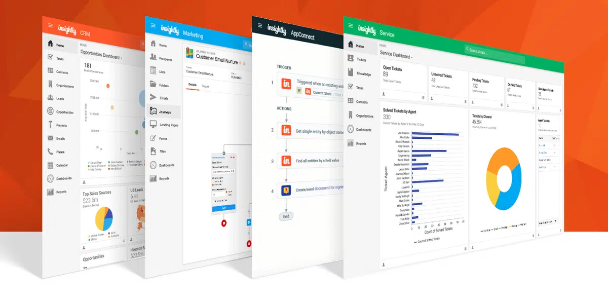 Users can create tailored workflows, centralize data, and integrate with many outside tools through Insightly.