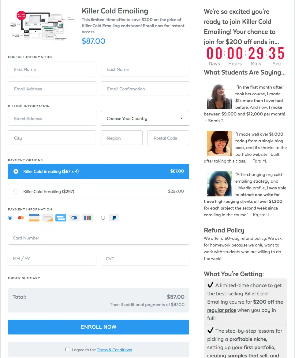 For example, here’s an online form allowing visitors to register for a course called Killer Cold Emailing: