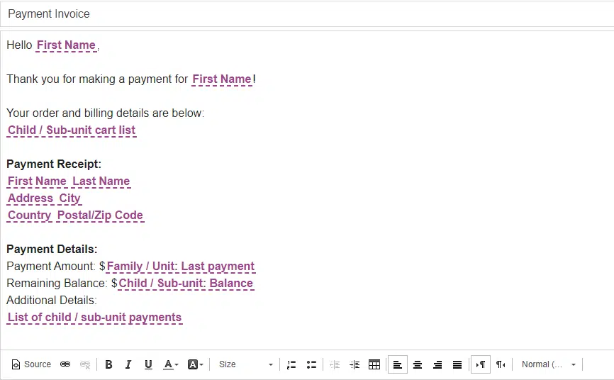 Here’s one such template, albeit for a payment invoice, in Regpack registration software.