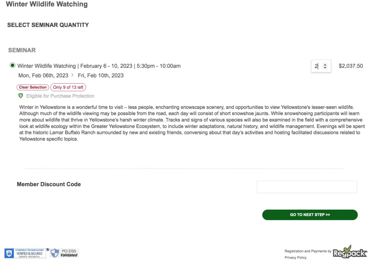 First, they’re asked how many people they’re signing up for the wildlife course: