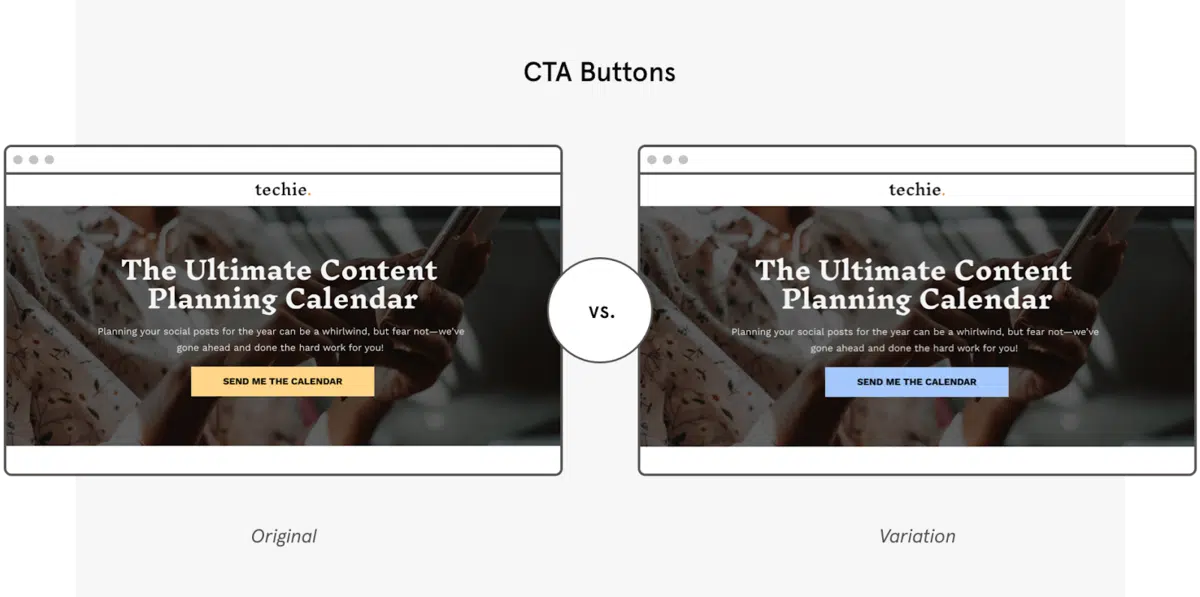 In the CTA button example, your plan might be to replace the original CTA button with a light blue one, since blue is known to evoke feelings of trust.