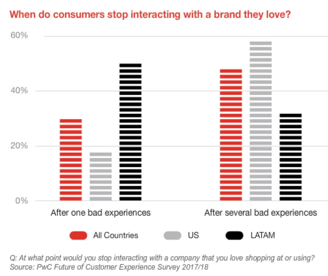 In fact, PwC’s CX report found that one in three consumers will walk away from a brand after just one negative experience.