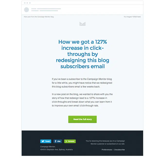 Campaign Monitor found that using CTA buttons instead of text links got them a 28% increase in click-throughs.