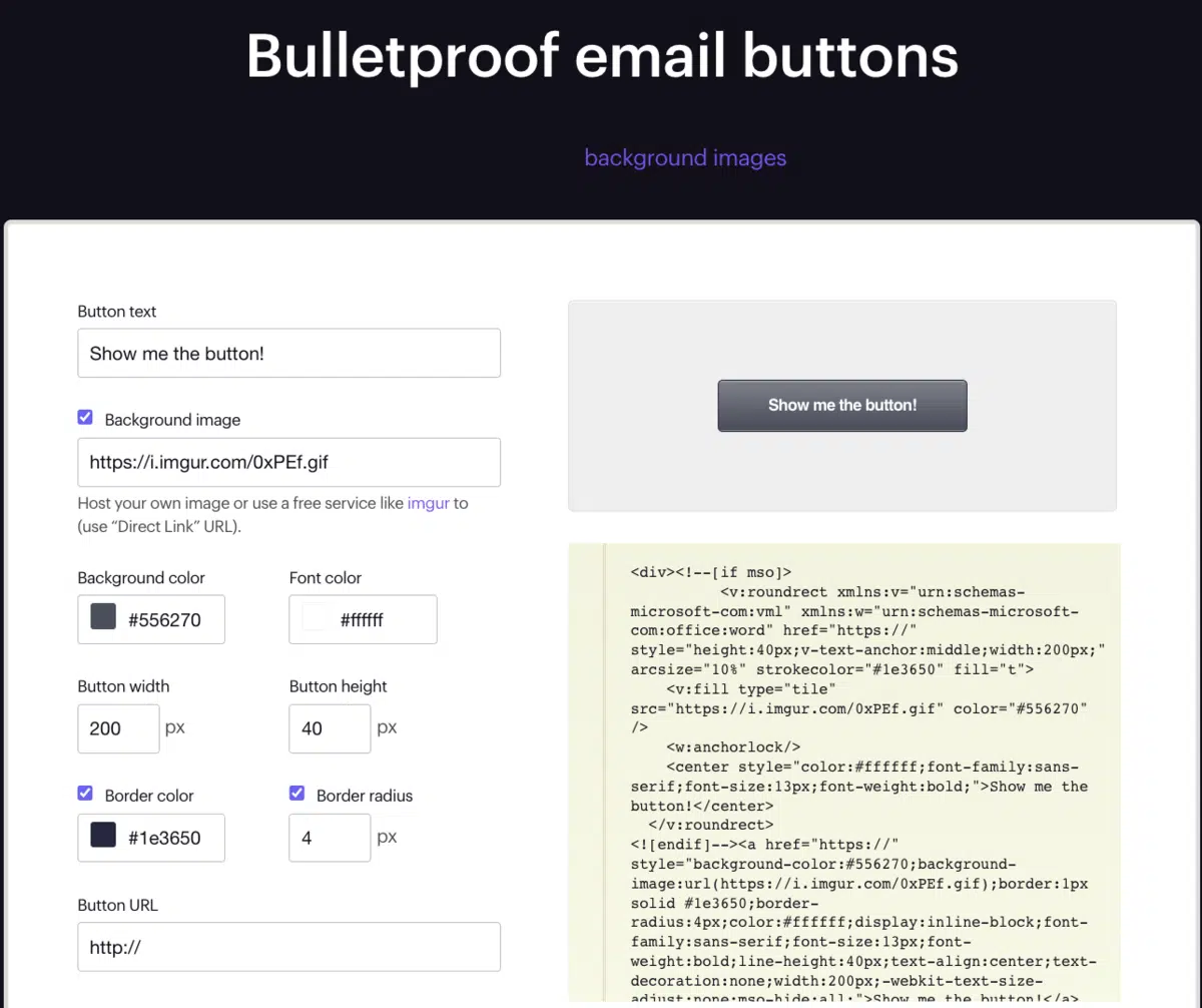 Tools like Bulletproof Button (shown below) can help you quickly create well-designed CTA buttons for your school’s marketing emails.