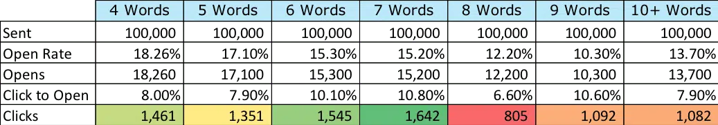 First of all, a good subject line is a short and concise one. According to research, the optimal size is 41 characters, or seven words.