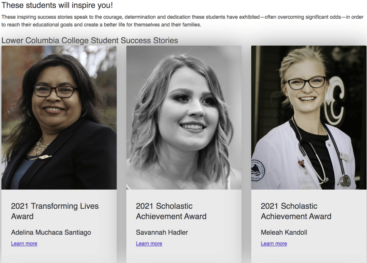 For example, Lower Columbia College has an entire page on its website dedicated to that kind of content: