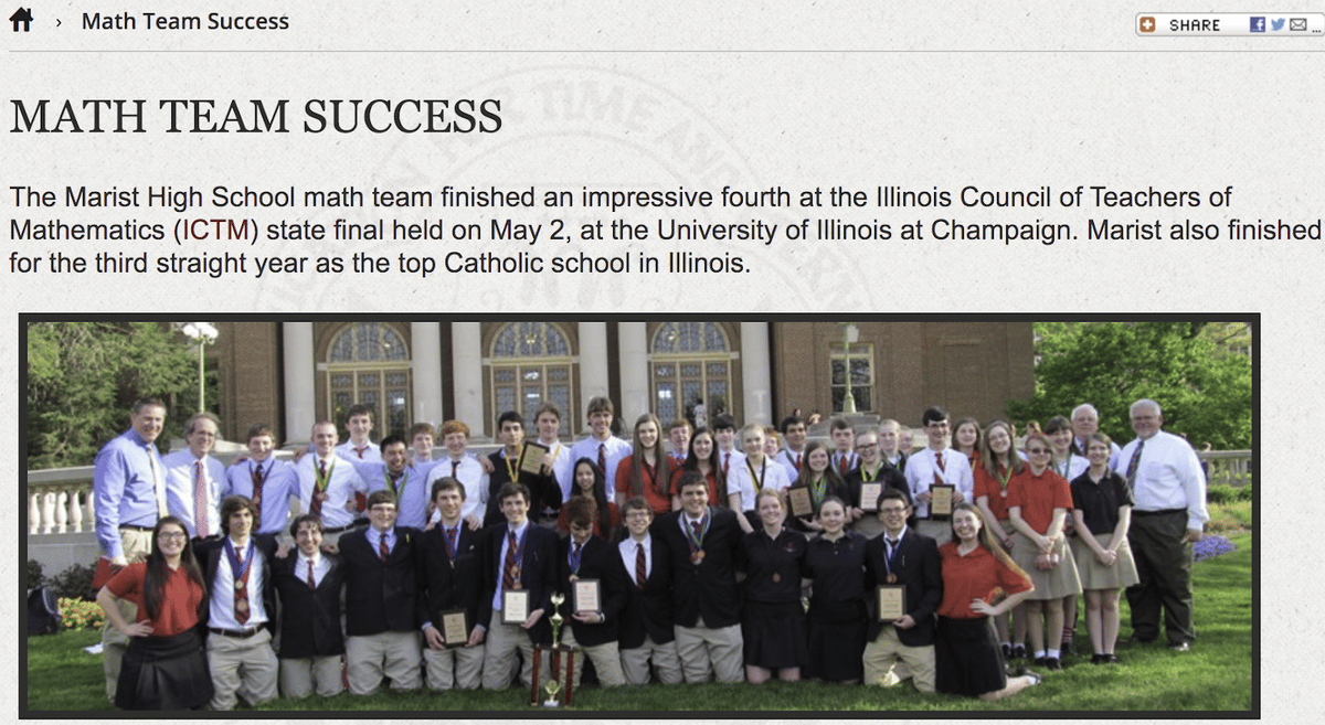 For example, if your school’s math team performed exceptionally well at a math tournament, write about that, as the Marist High School does on its website: