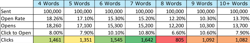 First of all, a good subject line is a short and concise one. According to research, the optimal size is 41 characters, or seven words.