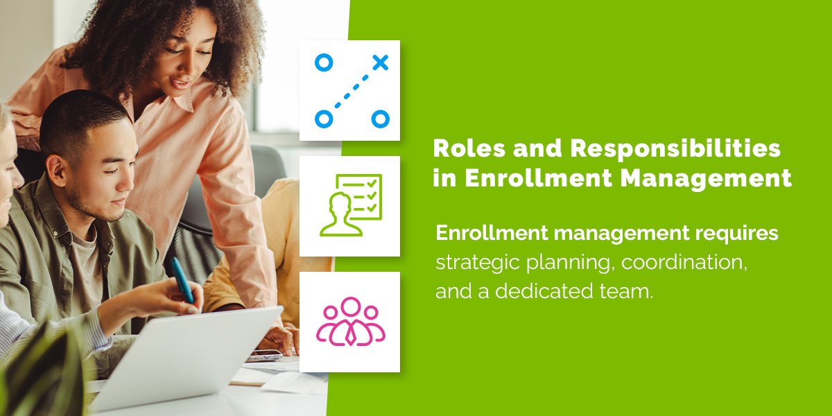 Enrollment management requires strategic planning, coordination, and a dedicated team. The structure will vary depending on your organizational scope. While specific roles may differ across industries, many core responsibilities remain consistent. For example, enrollment management strategies for universities might include these roles: