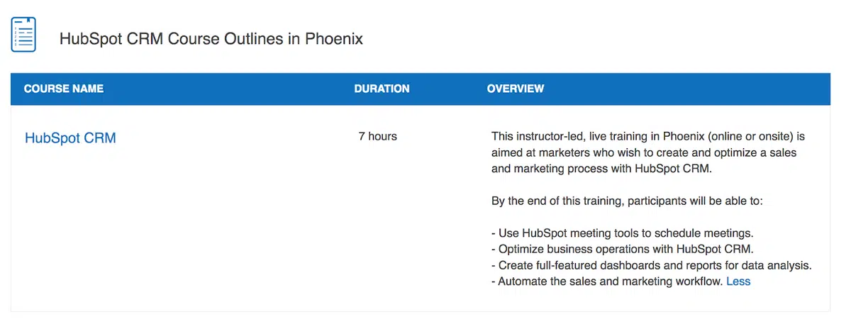 For example, HubSpot does a great job here of listing what attendees will learn from attending the CRM training event: