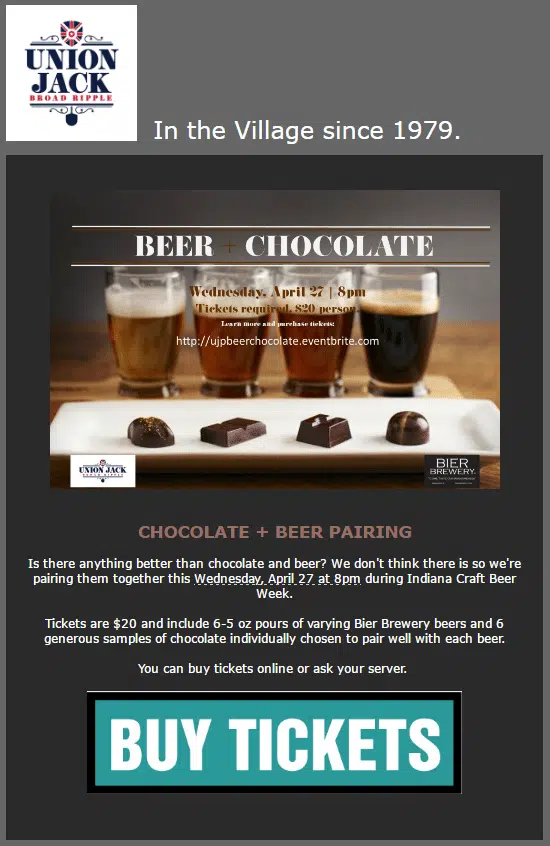 Here’s an example of an event marketing email from Union Jack that works wonderfully: