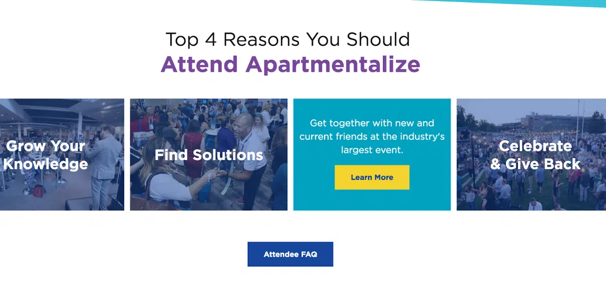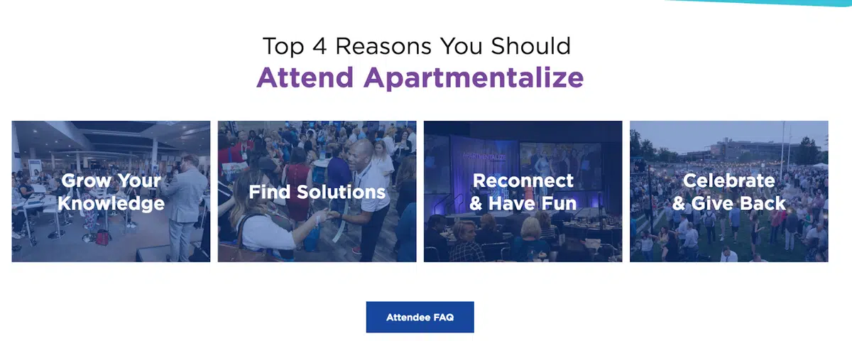Apartmentalize, an event for professionals in the property management industry, also does an excellent job at highlighting the benefits of attending: