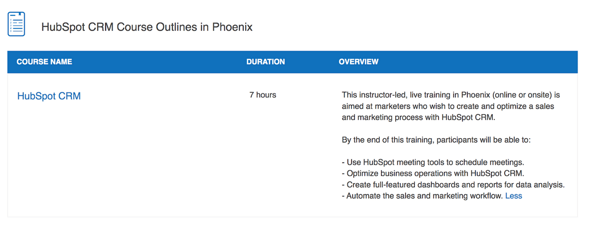For example, HubSpot does a great job here of listing what attendees will learn from attending the CRM training event: