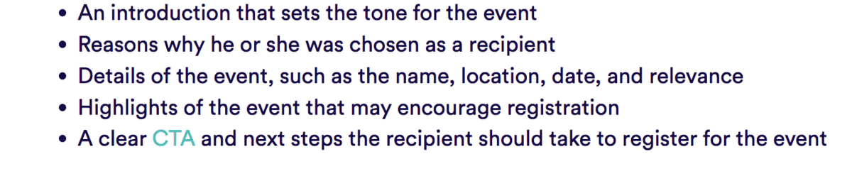 It should also include information that speaks more to the heart of the attendee, namely, the major benefits they will receive from attending the event.