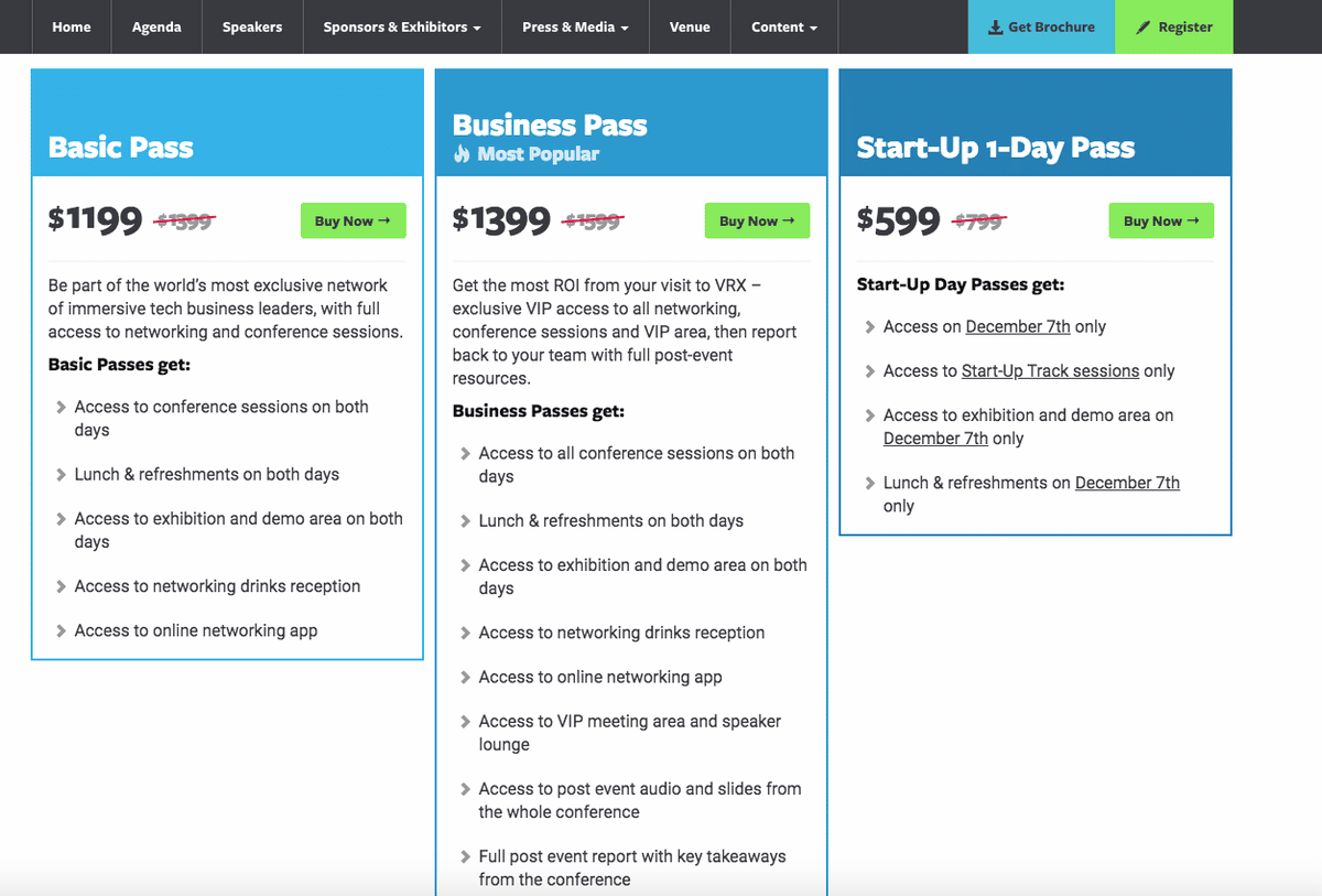Doing this not only secures you a wide swathe of attendees who might’ve otherwise not attended at the higher price point, but it also creates some early buzz around your event.