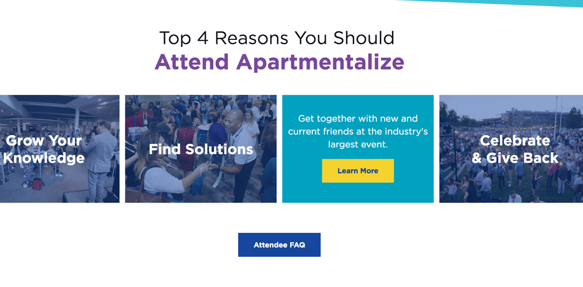 Apartmentalize, an event for professionals in the property management industry, also does an excellent job at highlighting the benefits of attending: