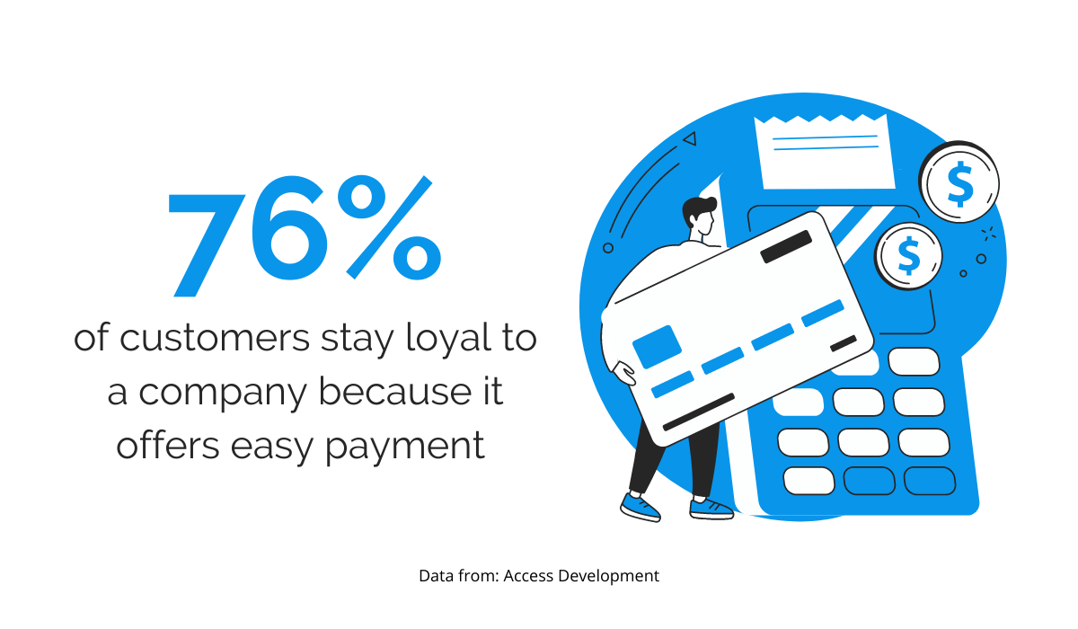 It might not seem logical, but studies show that 76% of consumers think an easy payment process is an important reason they remain loyal to a brand.
