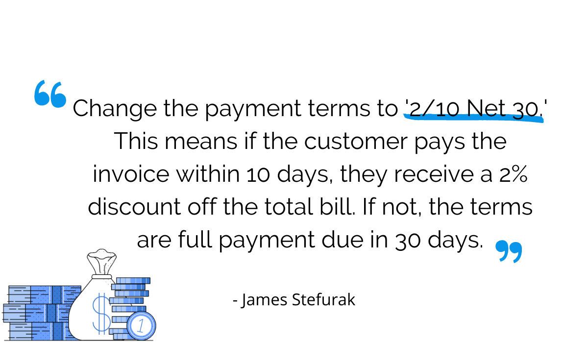 James Stefurak, the Invoice Factoring Guide’s managing editor, thinks you’re more likely to get paid on time if you offer an incentive.