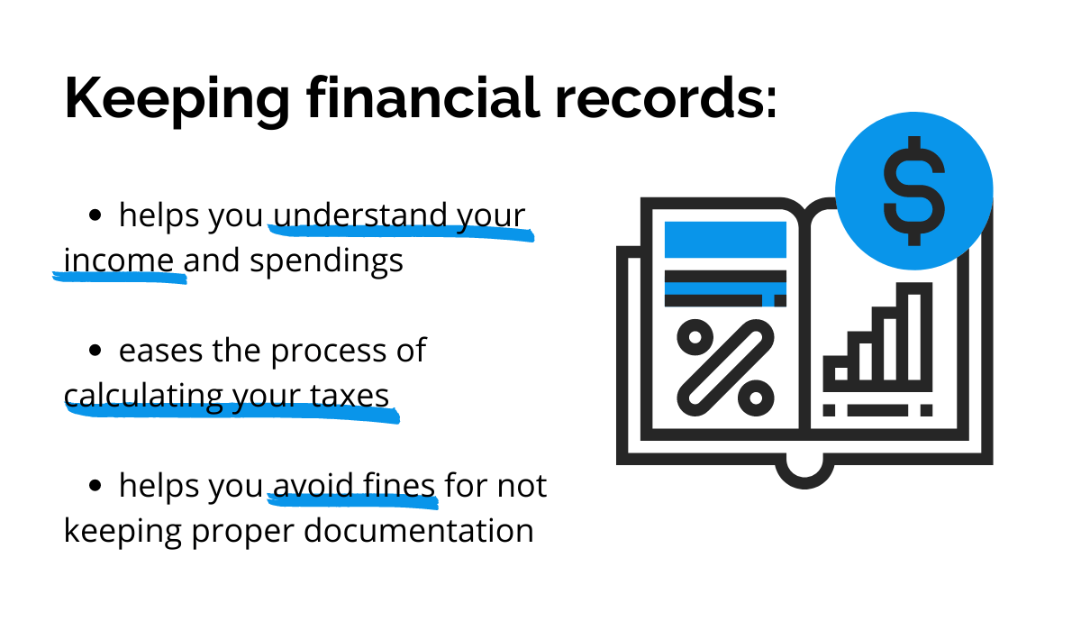 You can hire a bookkeeper to do it manually or opt for software that helps track all your payments and maintain the records. That way, you’ll quickly find and use any documents you save using such software, making tax calculation a breeze.