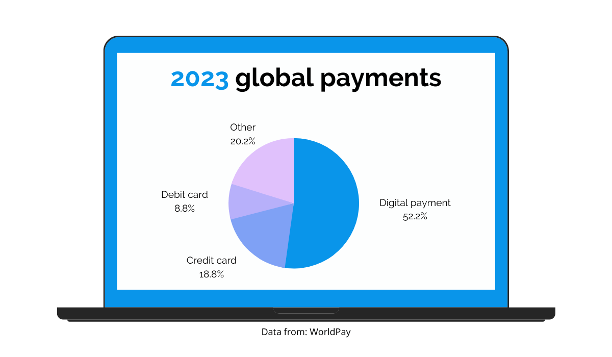 The main takeaway is that digital payments will take over the global payments market and make up 52.2% of e-commerce payments in 2023.