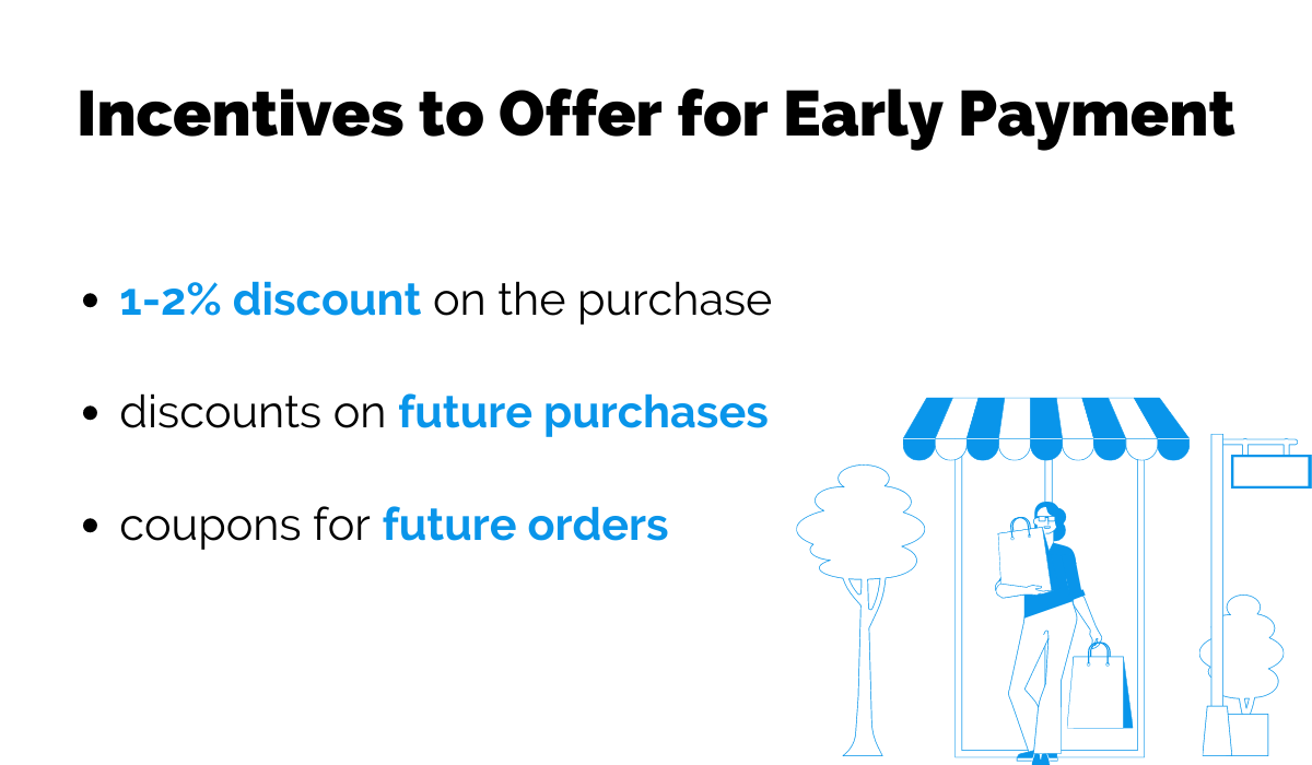 Because of this, early payment discounts or similar rewards offered to those who pay well before the due date are the way to go.