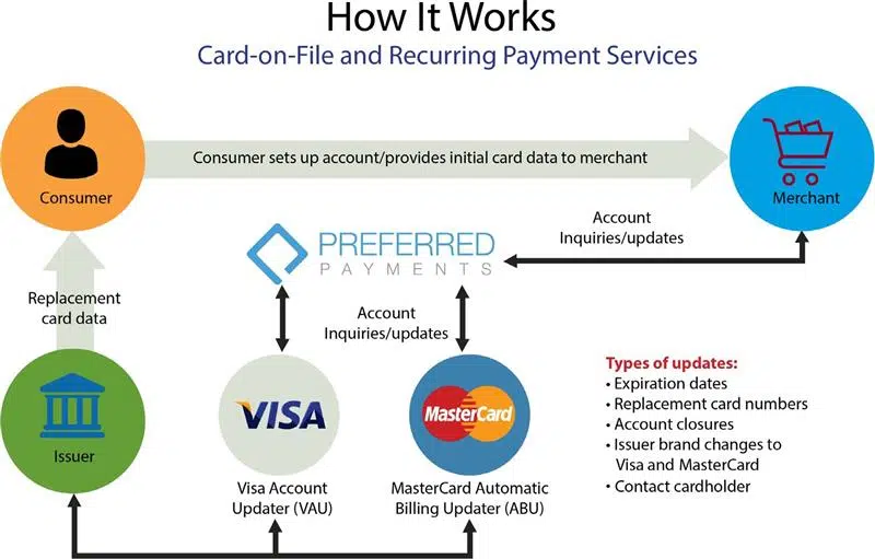 An account updater feature automatically searches for new card information before the billing date and then updates accounts with any findings.