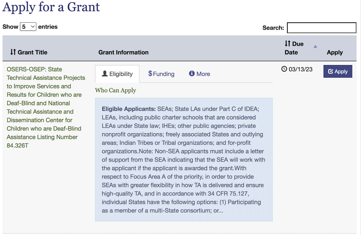 In the above case, the winner of the grant will win a sum of money in funding that they must use to create better special needs services for deaf-blind students.