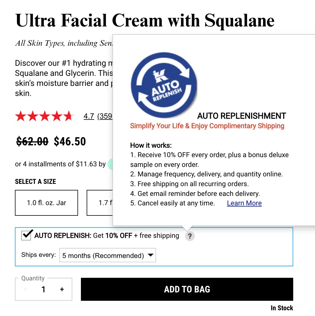 Some services, however, have more to explain because of the more complex nature of their subscriptions. They, therefore, need a better format than a paragraph for getting this information across to the buyer, like in this example from Kiehl’s: