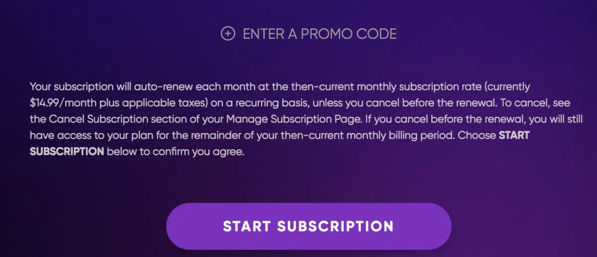 For example, HBO Max does a great job of clarifying the subscription terms in paragraph form during the checkout process: