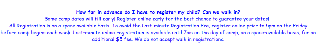 Therefore, if your camp starts on, say, a Monday and you close registrations the weekend before, you might miss out on plenty of eager campers that would have otherwise loved spending their summer with you.