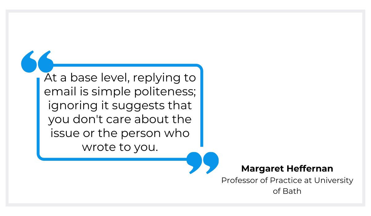 And although that may not be the reality of the situation, the fact remains that, according to the writer Margaret Heffernan, “how you deal with email says something fundamental about how reliable you are.”