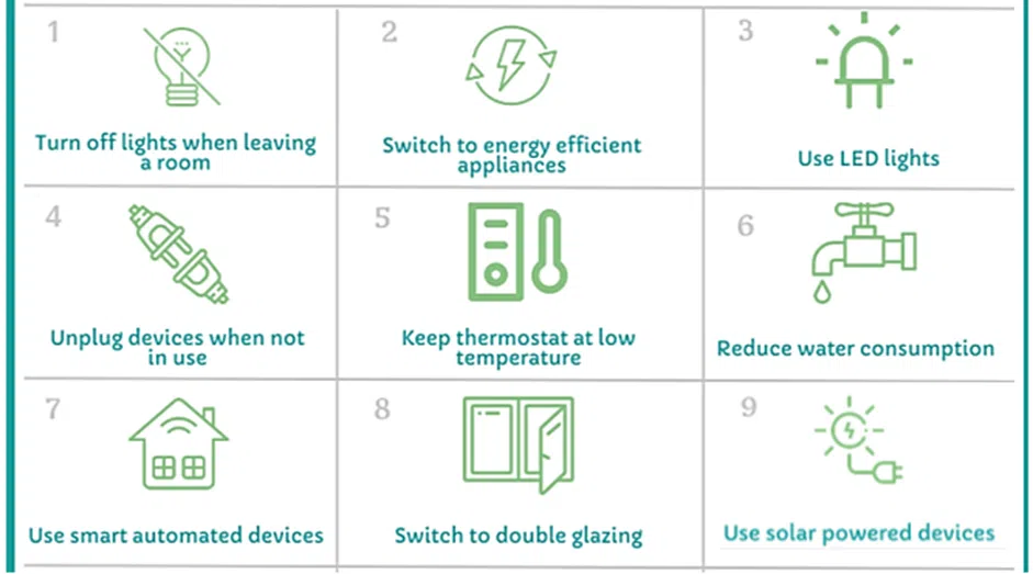 Here are some utility cost-saving measures, ranging from those that involve almost no costs (turning off lights and reducing heat) to those that require some investment (double-glazed windows or solar power).
