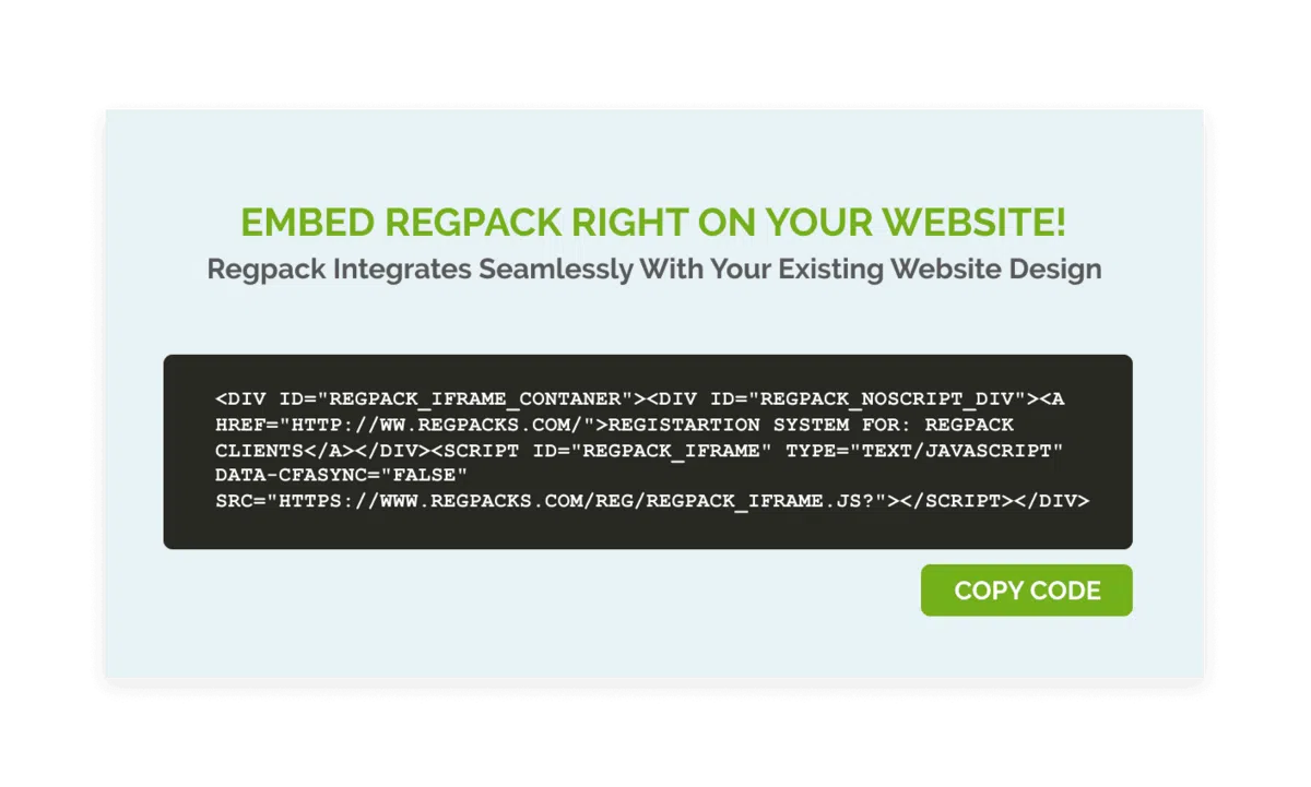 Regpack, for instance, offers embedded registration forms so that parents who find the website can register their children immediately without needing to navigate to another platform.