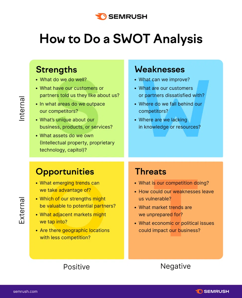 To conduct a SWOT analysis, ask yourself the following questions about your after-school program management: