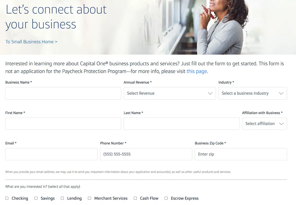 Sometimes, if you sign up online, the bank will first have you fill out a form to qualify you and make sure they can attend to your needs, as Capital One does in the form below: