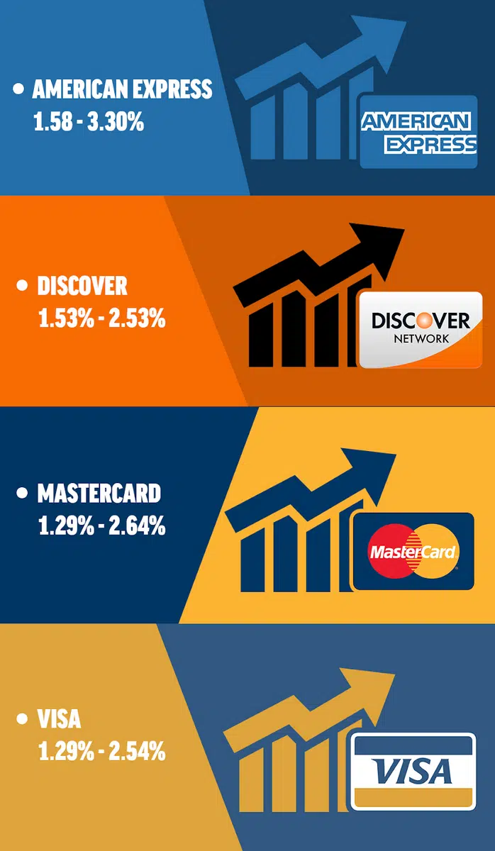 Here’s Payment Depot’s summary of the average processing fees at four major networks: